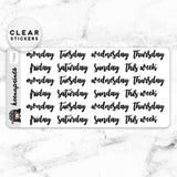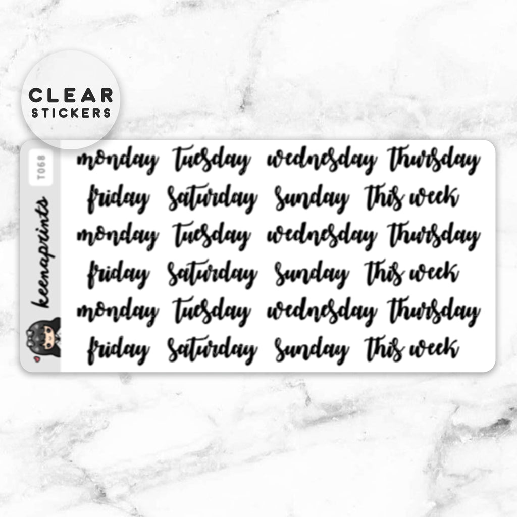 CALLIGRAPHY WEEKDAYS LABEL CLEAR STICKERS - T068