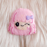 Keep your pages organized in the cutest way! This handmade felt paperclip bookmark features the adorable Pastel Princess chibi and is the perfect companion for all your favorite planners. Whether you use an Erin Condren, Plum Paper, Kikki K, Filofax, Midori, Hobonichi, Sterling Ink, Plotter, or any other paper planner, this little cutie is here to brighten your planning sessions. It also works great for scrapbooks, journals, and calendars—making it both functional and fun.