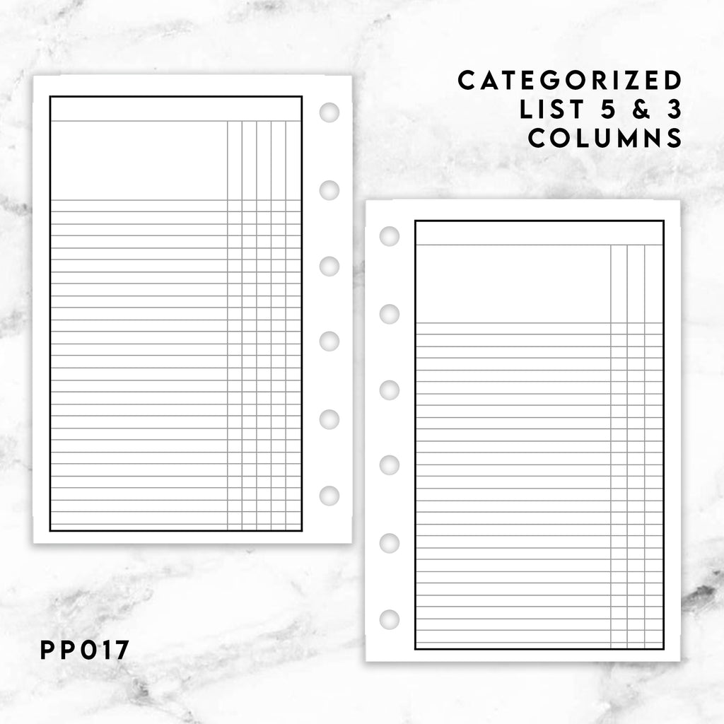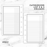 PP017 | CATEGORIZED LIST PLANNER PRINTABLE INSERT INSERT