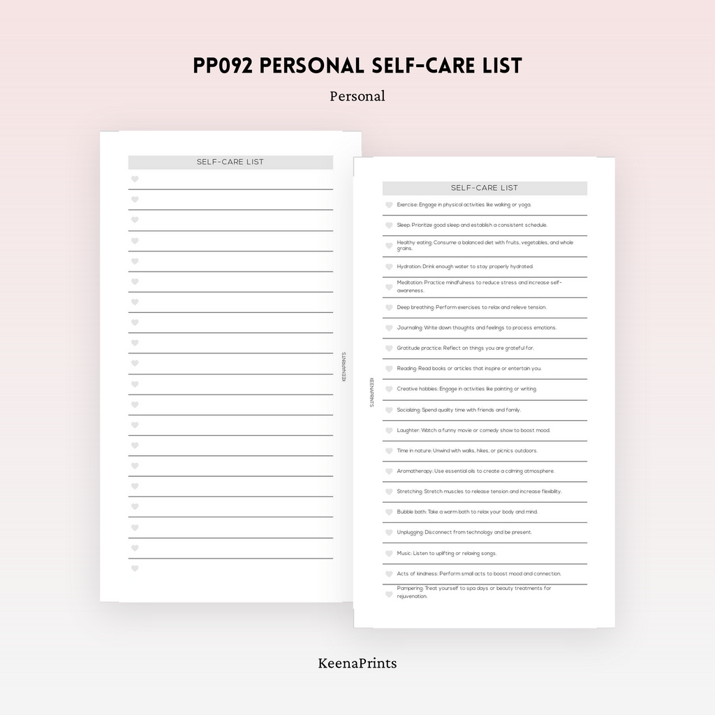PP092 | SELF-CARE LIST PLANNER PRINTABLE INSERT
