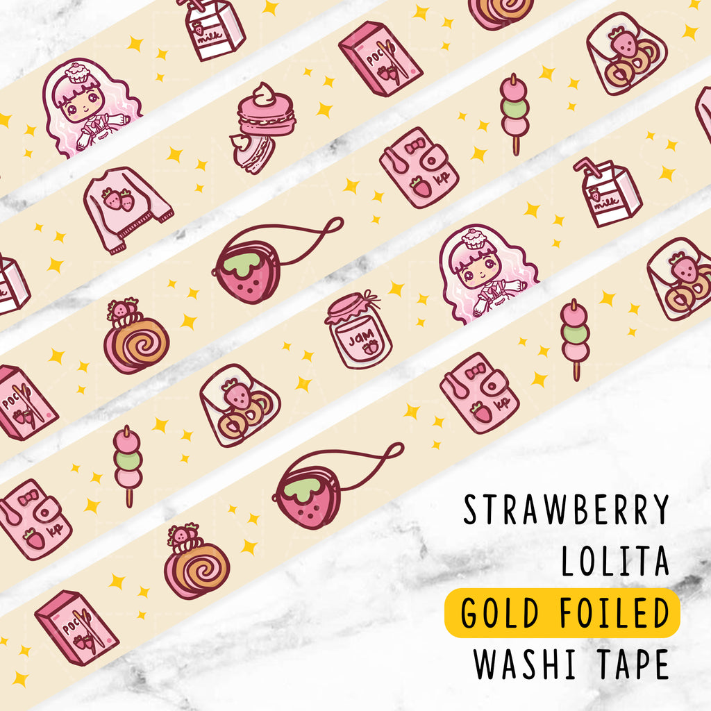 STRAWBERRY LOLITA GOLD FOILED WASHI TAPE - WT061 - 15mm