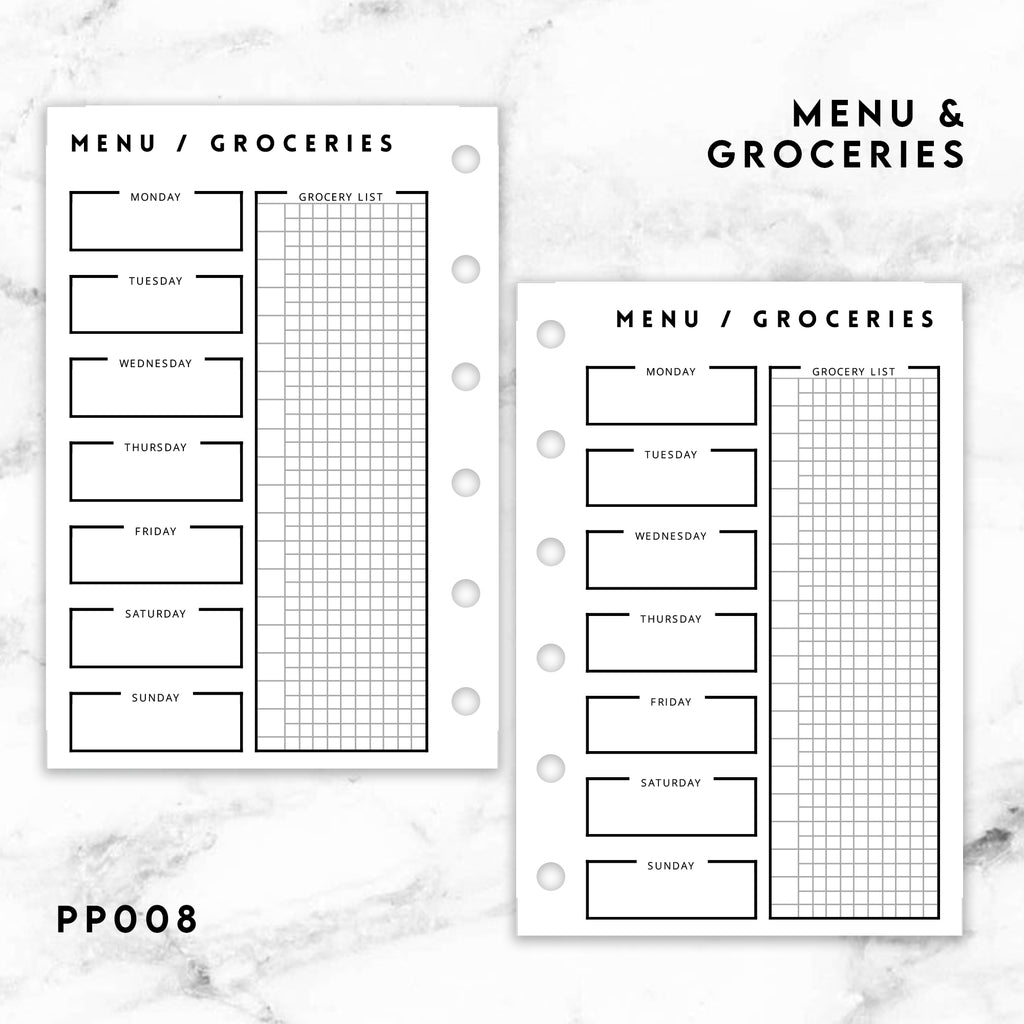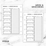 PP008 | MENU & GROCERIES PLANNER PRINTABLE INSERT