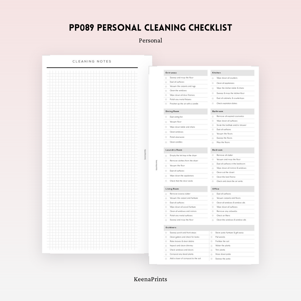 PP089 | CLEANING CHECKLIST PLANNER PRINTABLE INSERT