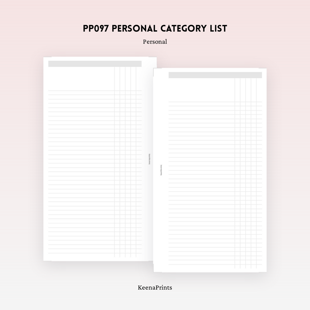 PP097 | CATEGORY LIST PLANNER PRINTABLE INSERT
