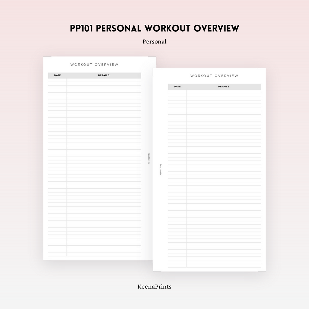 PP101 | WORKOUT OVERVIEW PLANNER PRINTABLE INSERT