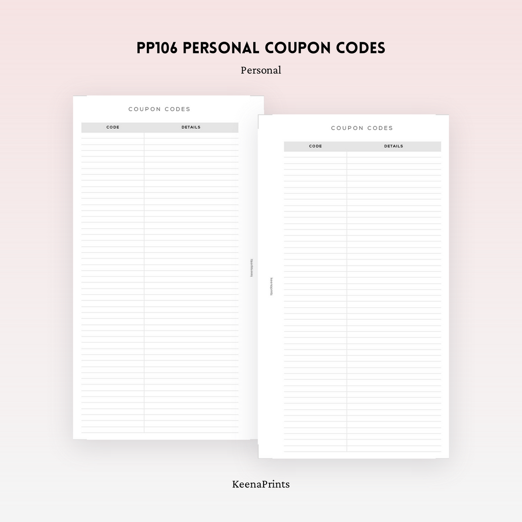 PP106 | COUPON CODES PLANNER PRINTABLE INSERT
