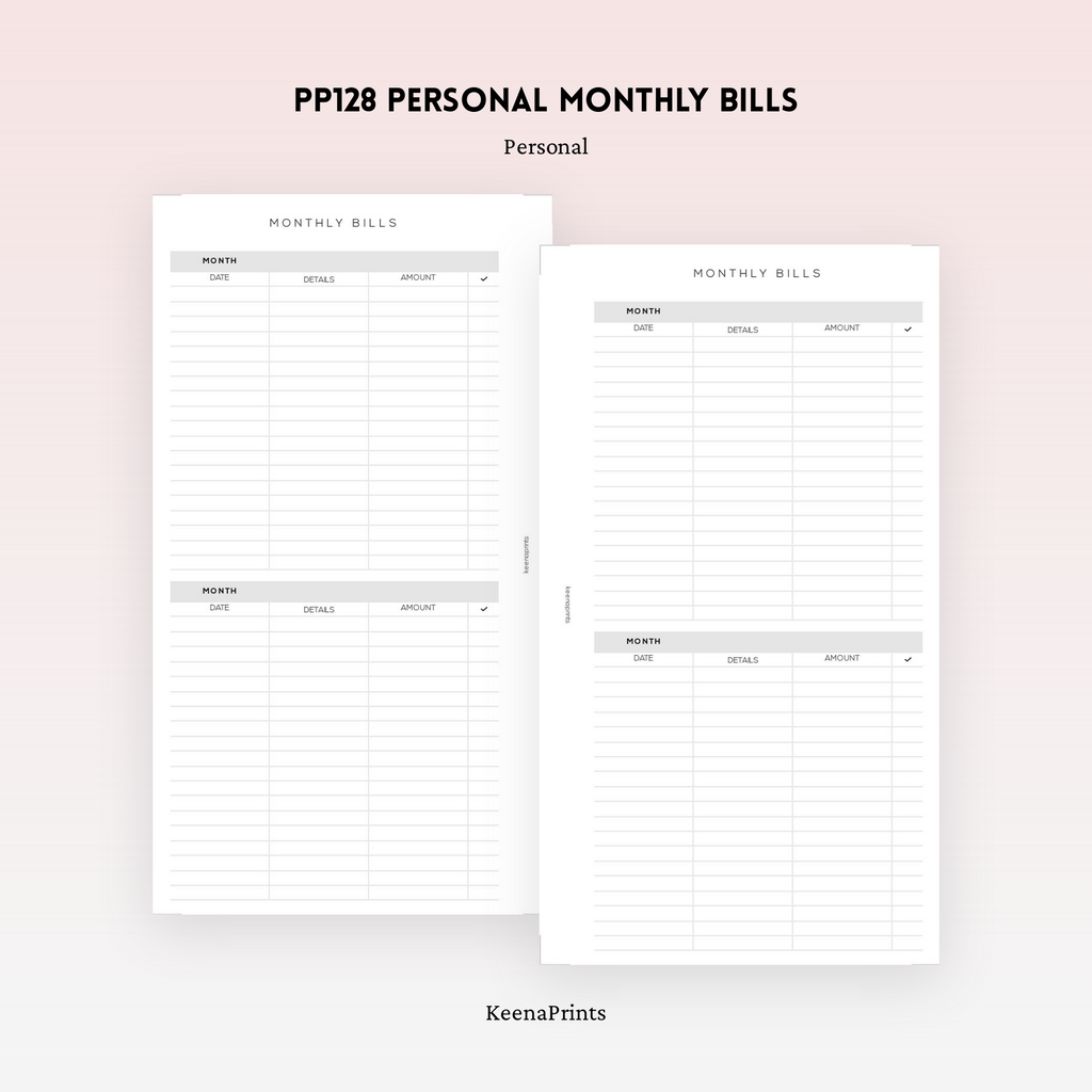 PP128 | MONTHLY BILLS PLANNER PRINTABLE INSERT