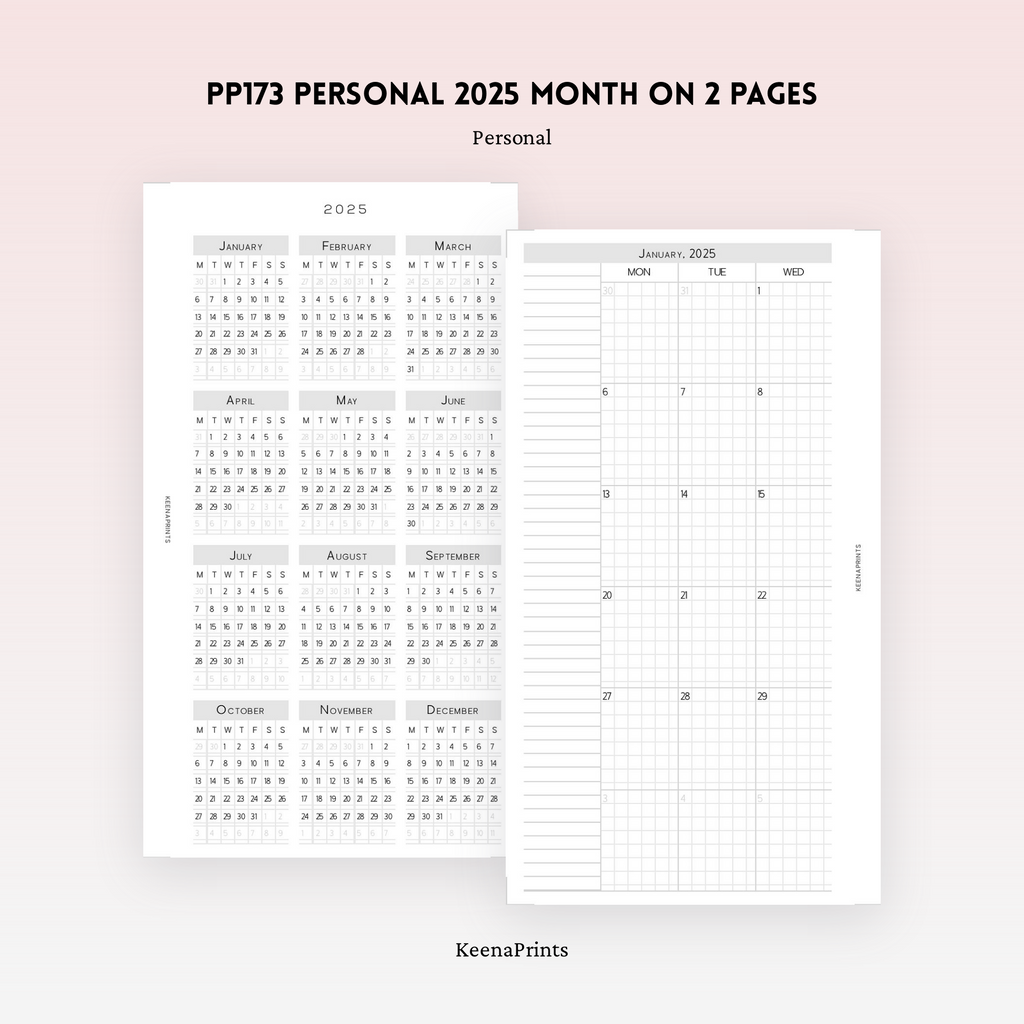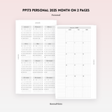 PP173 | 2025 MONTH ON 2 PAGES PLANNER PRINTABLE INSERT
