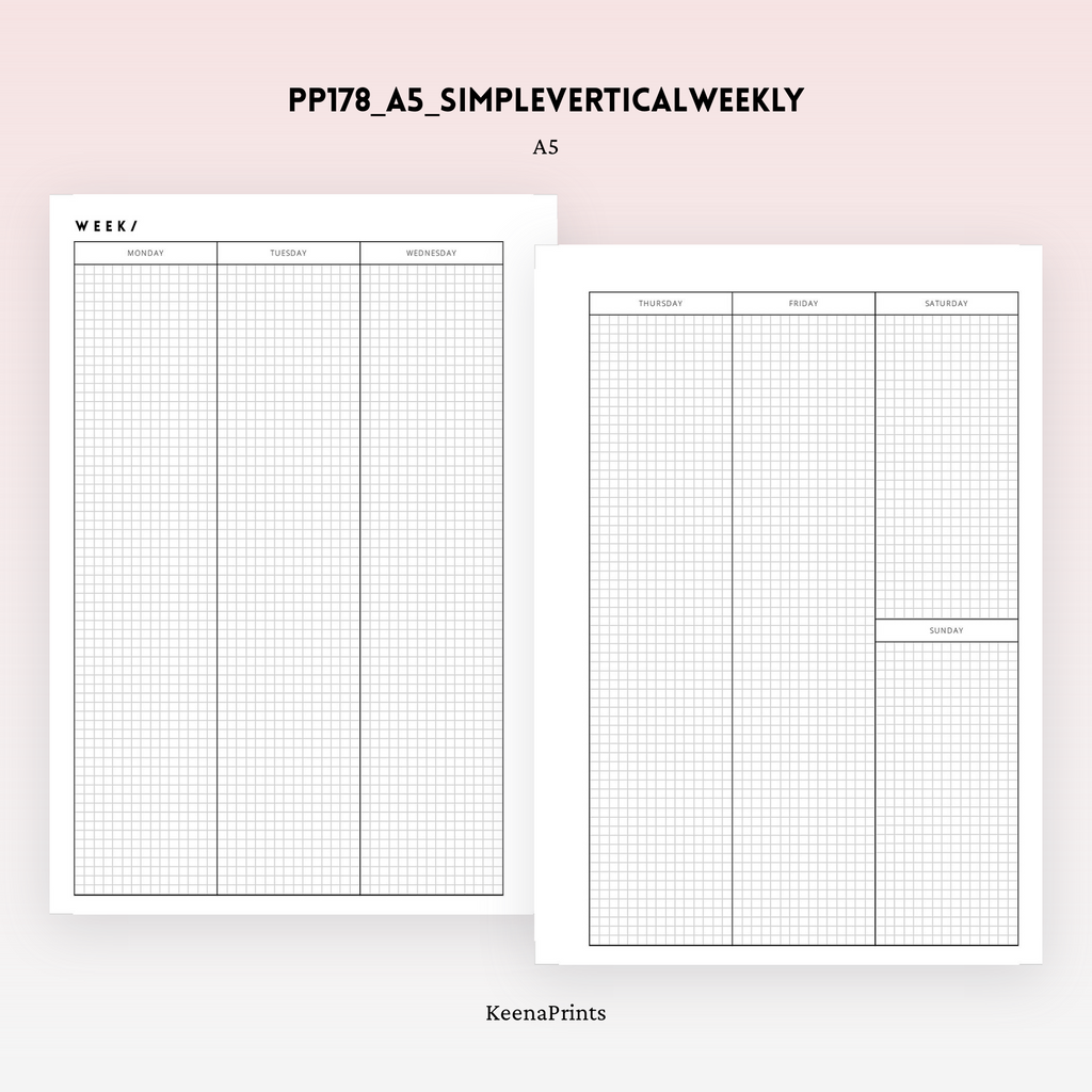 PP178 | SIMPLE WEEK ON 2 PAGES WEEKLY UNDATED PLANNER PRINTABLE INSERT