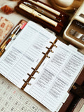 The printable is 3.75" x 6.75" which is ideal for personal size Filofax or Kikki K medium size.