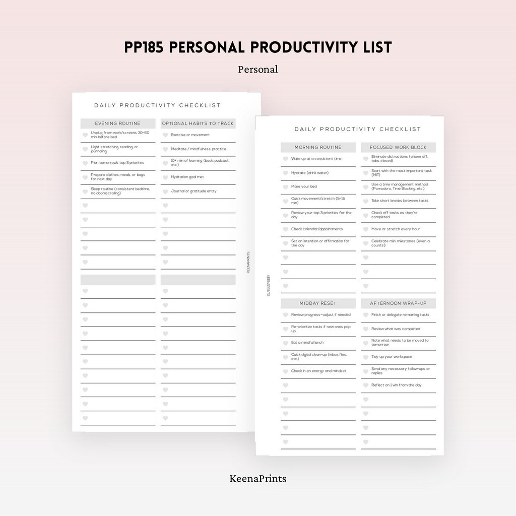 PP185 | PRODUCTIVITY CHECKLIST PLANNER PRINTABLE INSERT